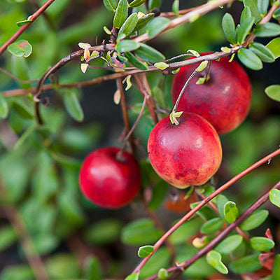 La Canneberge appartient à la famille des Ericacées et au genre Vaccinium, comme la myrtille. Poussant naturellement dans les tourbières nord américaines, elle se plaît dans les sols acides et humides. La Canneberge est un petit arbuste couvre-sol de 30 cm de hauteur et 60 cm de largeur, à la croissance plutôt lente. Elle est très rustique, résistant jusqu'à -25°C et peut vivre plusieurs dizaines d'années. Ses feuilles ovales et pointues sont persistantes. Les tiges ont la particularité de développer des stolons qui s'enracinent facilement dans le sol. Pilgrim est une variété nord-américaine à très gros fruits et très productive une fois installée. Les canneberges sont auto-fertiles mais comme pour tous les fruitiers, les rendements sont augmentés lors de pollinisation croisée avec une autre variété.