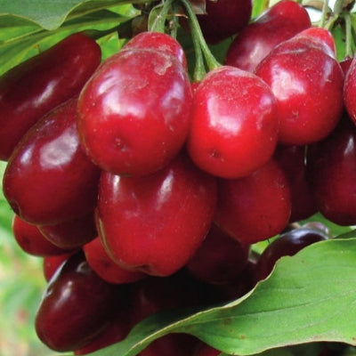 Le cornouiller à gros fruits, souvent méconnu, a pourtant des atouts incroyables pour votre forêt comestible. En effet, le cornouiller est très productif, très résistant au froid, et aux maladies. Il supporte très bien la taille et peut être implanté en haie, il est également très mellifère. La présence d'au moins deux cultivars différents plantés assez proches (moins de 6 mètres) est nécessaire pour la pollinisation croisée et favorise également une production abondante. A pleine maturité le fruit est délicieux, bien sucré. Riche en vitamine C, anti-oxydants, sucres, acides de fruits, pectines et anthocyane. Pour faciliter la récolte, on préconise de mettre des filets pour les arbustes pour récupérer les fruits murs, que l'on peut ensuite manger en frais, transformer ou congeler pour une transformation ultérieure.