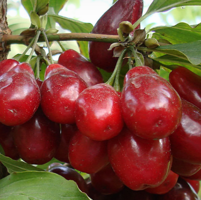 Le cornouiller à gros fruits, souvent méconnu, a pourtant des atouts incroyables pour votre forêt comestible. En effet, le cornouiller est très productif, très résistant au froid, et aux maladies. Il supporte très bien la taille et peut être implanté en haie, il est également très mellifère. La présence d'au moins deux cultivars différents plantés assez proches (moins de 6 mètres) est nécessaire pour la pollinisation croisée et favorise également une production abondante. A pleine maturité le fruit est délicieux, bien sucré. Riche en vitamine C, anti-oxydants, sucres, acides de fruits, pectines et anthocyane. Pour faciliter la récolte, on préconise de mettre des filets pour les arbustes pour récupérer les fruits murs, que l'on peut ensuite manger en frais, transformer ou congeler pour une transformation ultérieure.