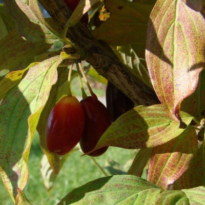 Le cornouiller à gros fruits, souvent méconnu, a pourtant des atouts incroyables pour votre forêt comestible. En effet, le cornouiller est très productif, très résistant au froid, et aux maladies. Il supporte très bien la taille et peut être implanté en haie, il est également très mellifère. La présence d'au moins deux cultivars différents plantés assez proches (moins de 6 mètres) est nécessaire pour la pollinisation croisée et favorise également une production abondante. A pleine maturité le fruit est délicieux, bien sucré. Riche en vitamine C, anti-oxydants, sucres, acides de fruits, pectines et anthocyane. Pour faciliter la récolte, on préconise de mettre des filets pour les arbustes pour récupérer les fruits murs, que l'on peut ensuite manger en frais, transformer ou congeler pour une transformation ultérieure.