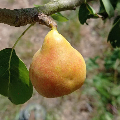 • Caractéristiques visuelles : petite poire jaune teintée de rouge