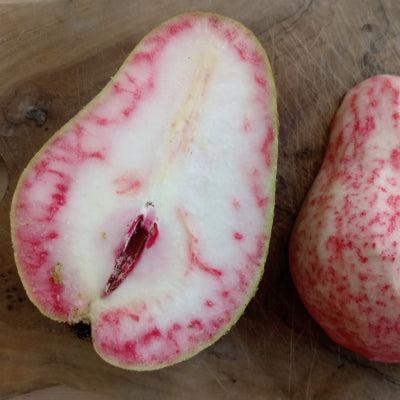 Variété de poire sanguine d'origine inconnue, très bonne à manger au couteau.