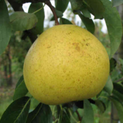 Poire sphérique de calibre important. Chair sucrée au parfum original. À entrecueillir tous les 10 jours.