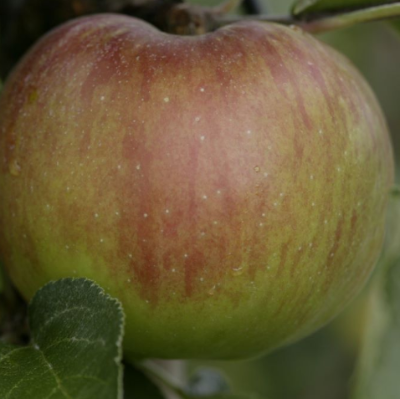 Ancienne variété originaire probablement d'Allemagne du nord. Gros fruit, flammé rouge sur fond jaune vert. Chair juteuse, friable, douce acide. Très appréciée pour les gâteaux.